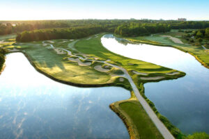 Fazio’s layout is the most visually stunning and plays through rolling, secluded terrain that might have you thinking about the classic, inland courses of the Carolina Sandhills. It’s well bunkered, but not in an intimidating way, with any of the hazards placed for appeal and only come into play with the most errant of shots. Natural elevation changes add a sense of drama and excitement to the round, with extensive tree cover throughout and water features visible on 15 holes – many of the lakes are in out-of-play areas to ensure playability.