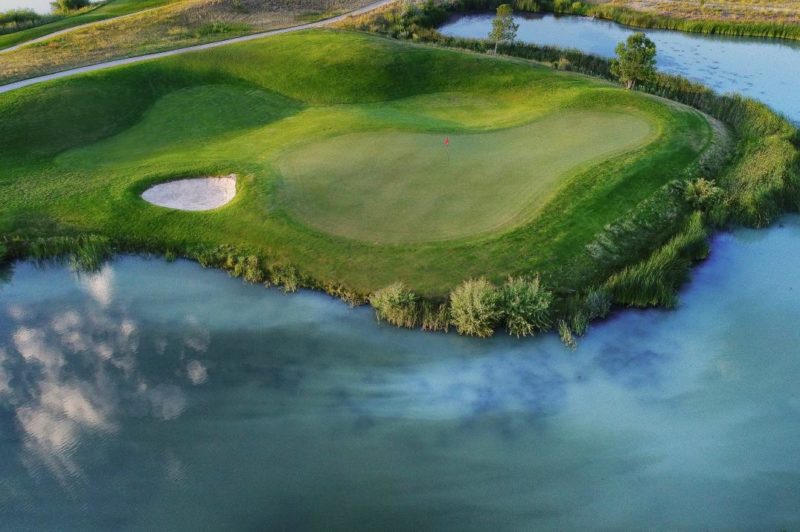 Using high-tech maps that identified places where the soil was uncontaminated at lower depths, Jones’ construction team dug lakes (which they lined with geotechnical fiber to keep out contamination) and used the excavated dirt to build mounds and other features around the course.