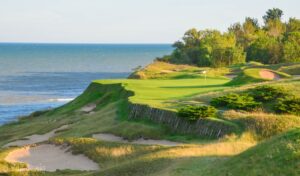 Bottom Line: Pete Dye transformed a dead flat abandoned army air base along a two-mile stretch of Lake Michigan into an imitation Irish-style links course, with awesome dividends. He peppered his rugged fairways and windswept greens with 1,012 (at last count) bunkers, some as small as a pothole. The course was the site of the PGA Championship in 2004, 2010 and 2015 and will host the 2020 Ryder Cup.