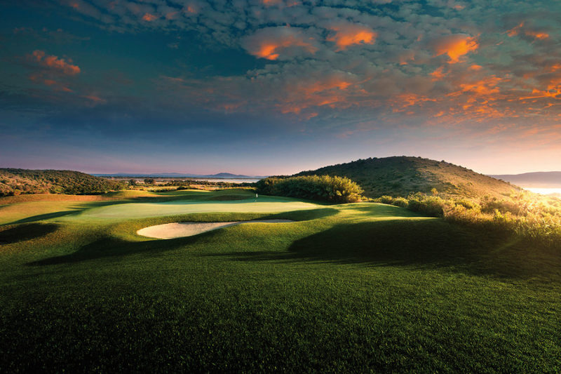 The Argentario course, adjacent to this luxurious resort in the heart of the Maremma, is set in the protected natural terrain of the Argentario promontory with stunning panoramas over the Orbetello Lagoon, the Tyrrhenian Sea and the surrounding rugged hillside. The front nine is laid out amongst Mediterranean vegetation and cork oak trees whilst the second nine weaves itself in and out of ancient olive groves and a number of natural water hazards.