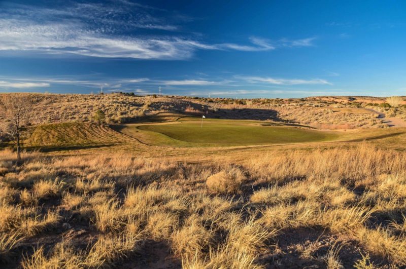 This course features wide fairways, generous greens, and pristine conditioning, all on a high-desert terrain with views of rocky soil, sagebrush, and juniper trees for miles with gentle changes in elevation. Designed by Gary Panks, the track’s challenge is heightened by several forced carries and deep bunkers throughout that add to the strong but fair challenge.