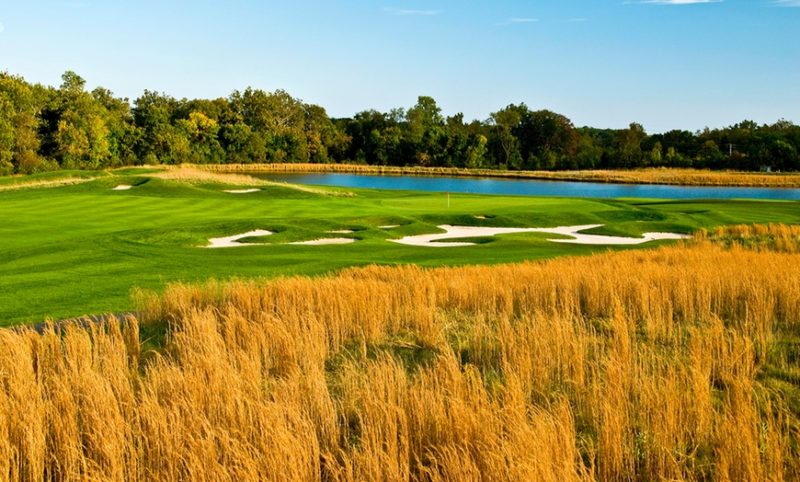 Routed by Warren Henderson and Rick Smith on windswept bluffs overlooking 3,100 feet of Lake Michigan shoreline, the Bluffs course resembles a seaside links with rolling terrain, natural fescues, and panoramic views of the lake. The play here is punctuated by one of the prettiest settings in golf.