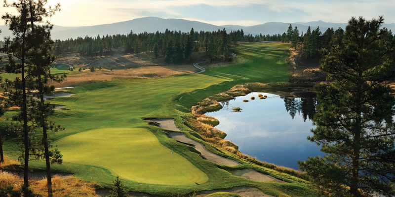 This Nick Faldo design offers strategy and eye candy with fescue lining the fairways, rugged edged bunkers throughout the routing, and impressive elevation changes. Located just a couple of miles from the Canadian border, the surrounding mountains provide a stunning backdrop for many shots golfers will have throughout the round while the bunkers and water hazards add to the challenge within the bounds of the course.