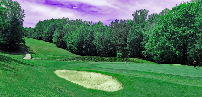 Although the course doesn’t have nearly the elevation changes you’ll find at My Old Kentucky Home, it more than makes up for in sloping fairways. Holes 3-8 offer fantastic views of the lake and the back nine is carved out of the surrounding forest.