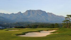 Set in the foothills of the Gunung Liman mountains, the site features prominent ridgelines, natural elevation changes, and a network of streams that play a central role in the course’s visual identity and strategic character.