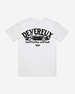 - Cars, Coffee and Golf Tee (White) – A nod to early weekend meetups and mid-round espresso.