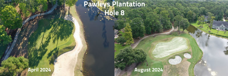By early August, the greens at Pawleys were all restored to their original size and re-grassed, while the greens surrounds are largely complete as well.