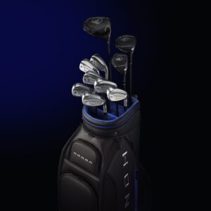 The TW777 PCB Max irons are designed for easy launch with a large head and full cup face. Engineered with a soft forged body and a vibration-absorbing emblem. The Honma CUT – a precision milled slope at the top of the face – enhances a visually forgiving appearance. (Irons: 5, 6, 7, 8, 9, 10, 11, AW, SW. MSRP $1,125 5-piece set with Vizard shafts)