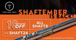 True Spec, global leader in custom club fitting and club building, is pleased to announce that their annual Shaftember Special has begun. Any customer booking a fitting by Sept. 30 at any True Spec location across the country will receive at least 10% off all purchased shafts by using the promo code “SHAFT24.”