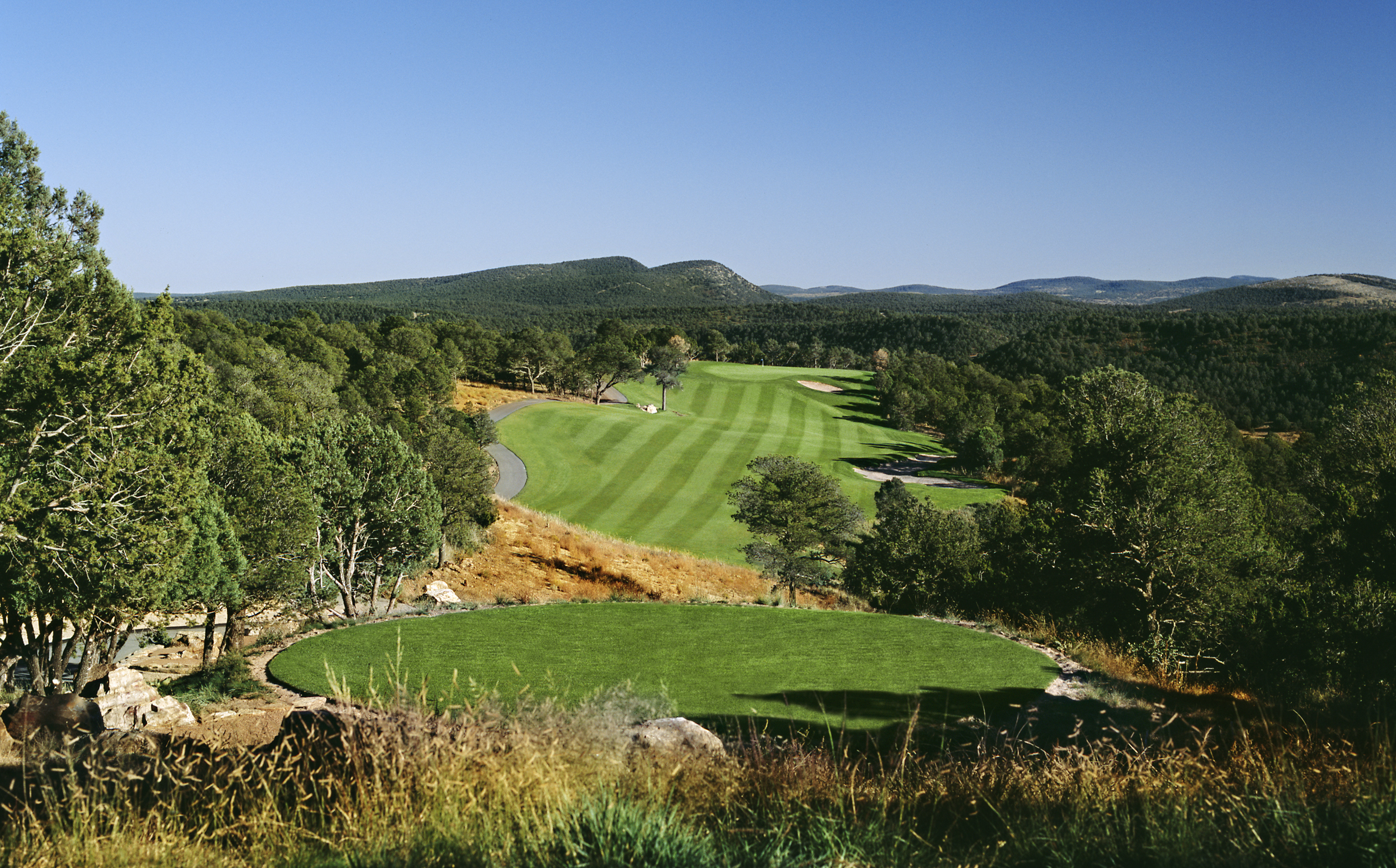 More than anything, what distinguishes the Rainmakers golf course the most is the beauty and diversity of its terrain – meadows of native grasses, Ponderosa, pinon and juniper pines, natural arroyos, dramatic rock outcroppings and a view of Sierra Blanca or the Capitan mountains from 12 holes.