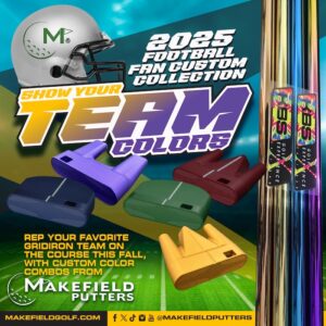 Bring the spirit of game day to the green with the brand new Makefield Putters Football Collection. Designed for fans who live and breathe football, this series lets you customize your putter with bold colored heads, grips, and shafts that match the colors of your favorite team, whether it’s pro, college, or even your hometown high school.