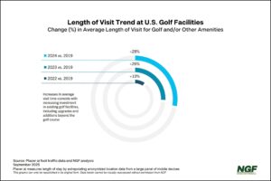Our researchers worked with Placer.ai to compile and analyze foot traffic data that reveals the average length of visit to golf course properties (for golf and anything else) continues to climb in recent years.