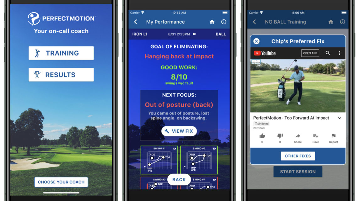 The PerfectMotion mobile app is a uniquely-personalized and immersive golf training system that allows golfers to quickly learn and feel correct body motion with every club through an innovative process of continuous expert feedback. With immediate feedback on every swing and putt, golfers learn to make adjustments until they groove proper technique. The end result is better contact, more accuracy and longer distance.