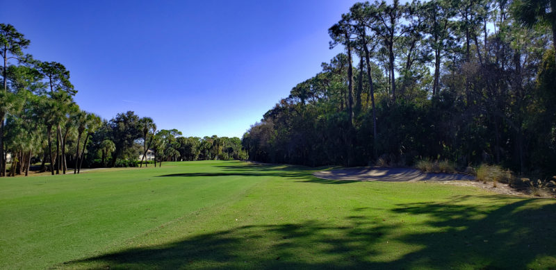 The stretch of holes from 12-15 is referred to as the “Panther’s Claw.” No. 12 is a short, 90-degree dogleg right that requires two shots over environmentally protected areas. Don’t let this hole fool you; it takes two well-executed shots to reach the green in regulation. The 13th is a par 5 where your second shot is the most demanding and sets up at least a 60-yard carry over water into a well-undulated green.