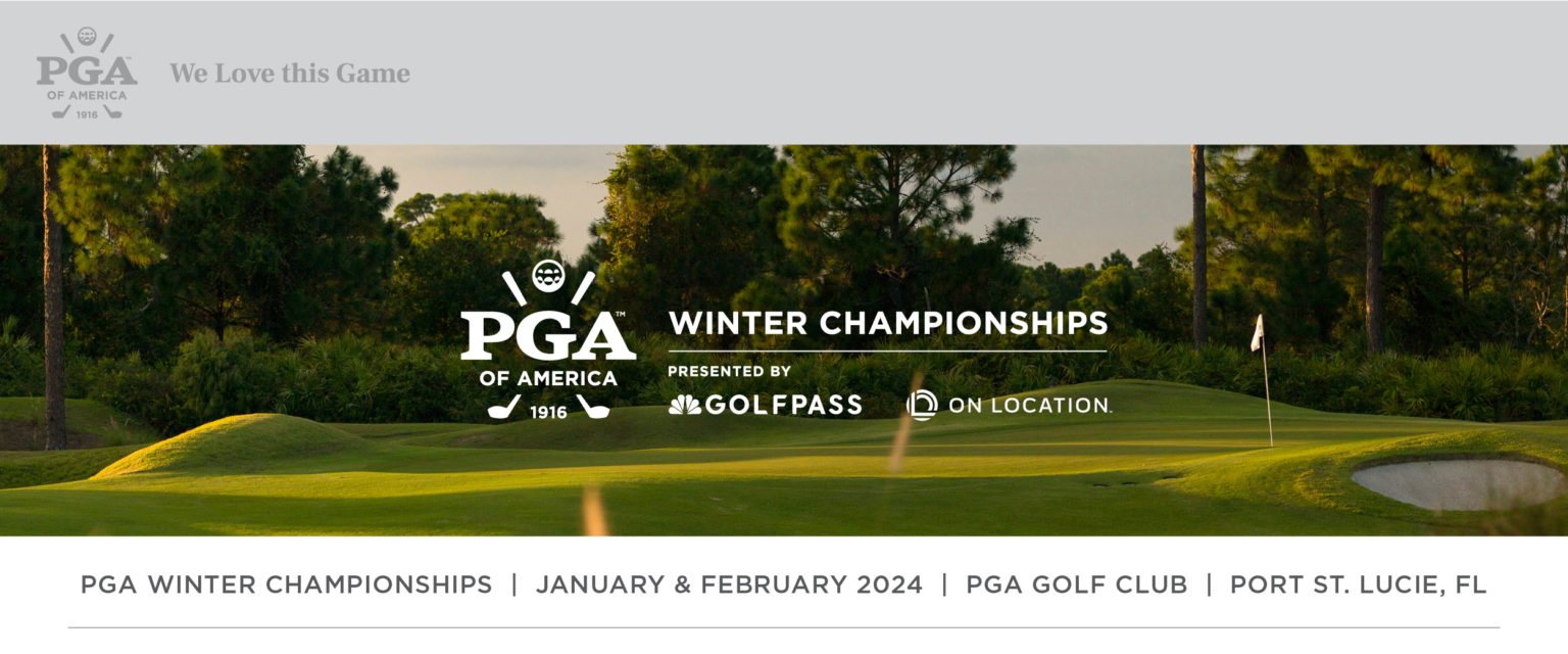 The PGA Winter Championships are presented by GolfPass and On Location. The PGA Senior Stroke Play Championship starts Sunday at PGA Golf Club.
