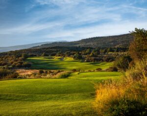 The Fazio front-nine has a desert feel, while the back is a true alpine experience with aspen-lined fairways. The Norman 18 has more length than the Fazio, and greens complexes are simpler. Putting is easier since the greens aren’t severely sloped.