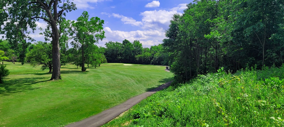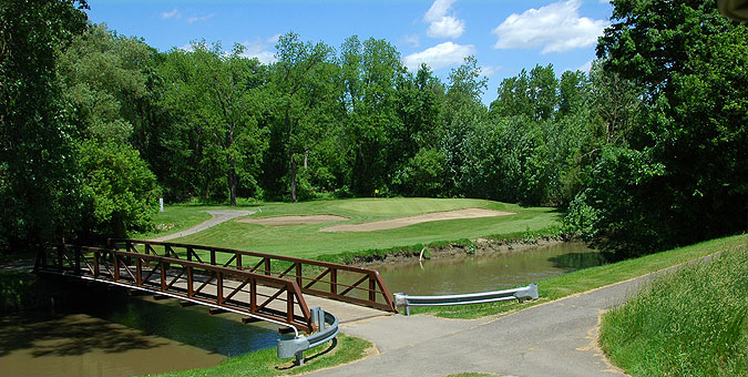 Your round starts out with a modest par 4, slight dogleg left, followed by a legitimate par 5 that plays 503 yards. Houses line the left side of the hole off the tee and are less in play as you hit the dogleg right. The fairway narrows as you get closer to the green. Longball hitters may be able to get on in two. Three and four are parallel par 4s that are pretty straightforward. The fifth is the first sighting of the Rouge River which helps to create a dogleg right. A good drive that is hit down the tree line with a slight draw could easily find the putting surface. No. 6 is a slightly longer mirror image of the previous hole.