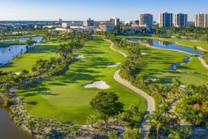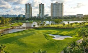 Varied flora and trees indigenous to Florida’s tropical climate create an oasis-like feel throughout the course, giving each hole a sense of privacy in the shadow of the area’s high-rise buildings and under seemingly endless blue skies.