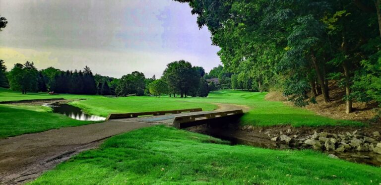 The last three holes are some of the most memorable golf holes I’ve played in Ohio. The 16th is a 324-yard par 4 that requires accuracy off the tee. Large pine trees frame the narrow landing area of the fairway. Your approach shot is blind and plays uphill into a small, round green that slopes from back to front and is protected by a lone bunker front right. You’ll need pinpoint accuracy to hold the green.