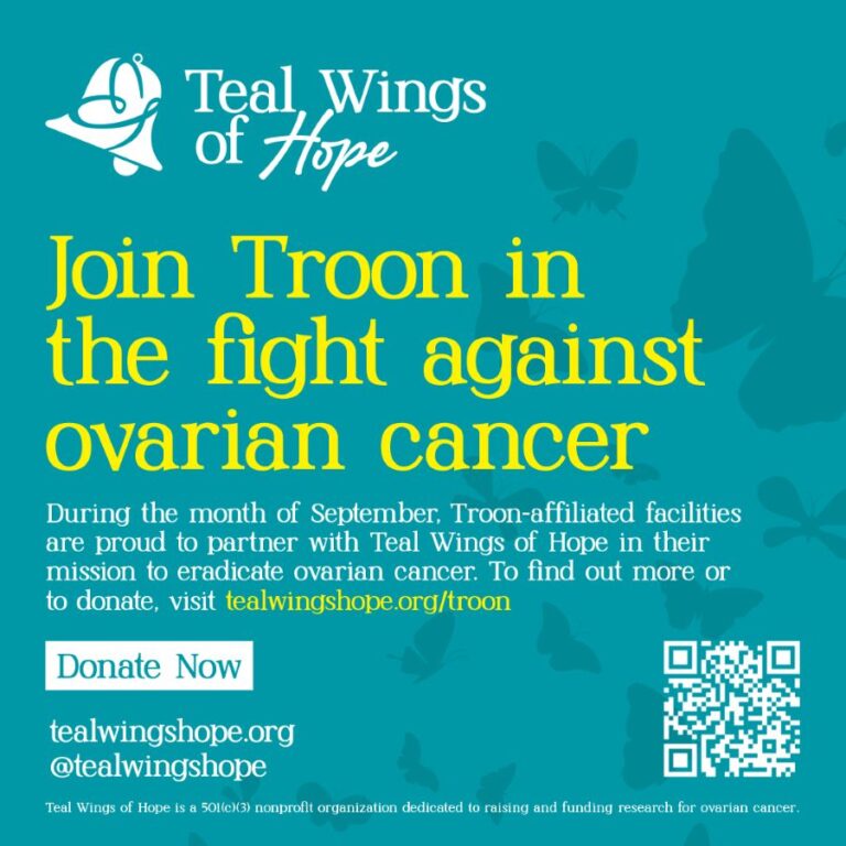 Troon-affiliated golf properties will fly teal checkered flags on their 18th greens to help raise awareness about ovarian cancer and will have various fundraising activities to support Teal Wings of Hope, a 501(c)(3) nonprofit organization dedicated to raising awareness and funding research for ovarian cancer.