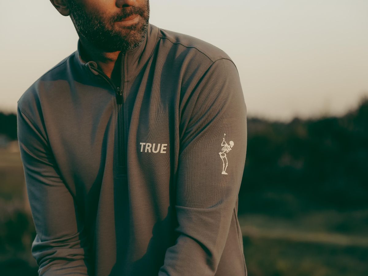 The LUX Tour Quarter Zip is the optimal mid-weight layering piece for the active and competitive golfer, built using Super Natural Materials delivering unreal performance, a premium look and feel, and next-level sustainability. This Quarter Zip is the perfect “all-season” weight to keep golfers feeling good during their pursuits on and off the course. The premium French-terry blend features a sustainable mix of industry-leading Tencel® (43%), Recycled Polyester (50%) and Spandex (7%) for maximum comfort and movement. It includes TRUE’s high visibility logo on the front left chest along with the Dead Golfer on the left sleeve.