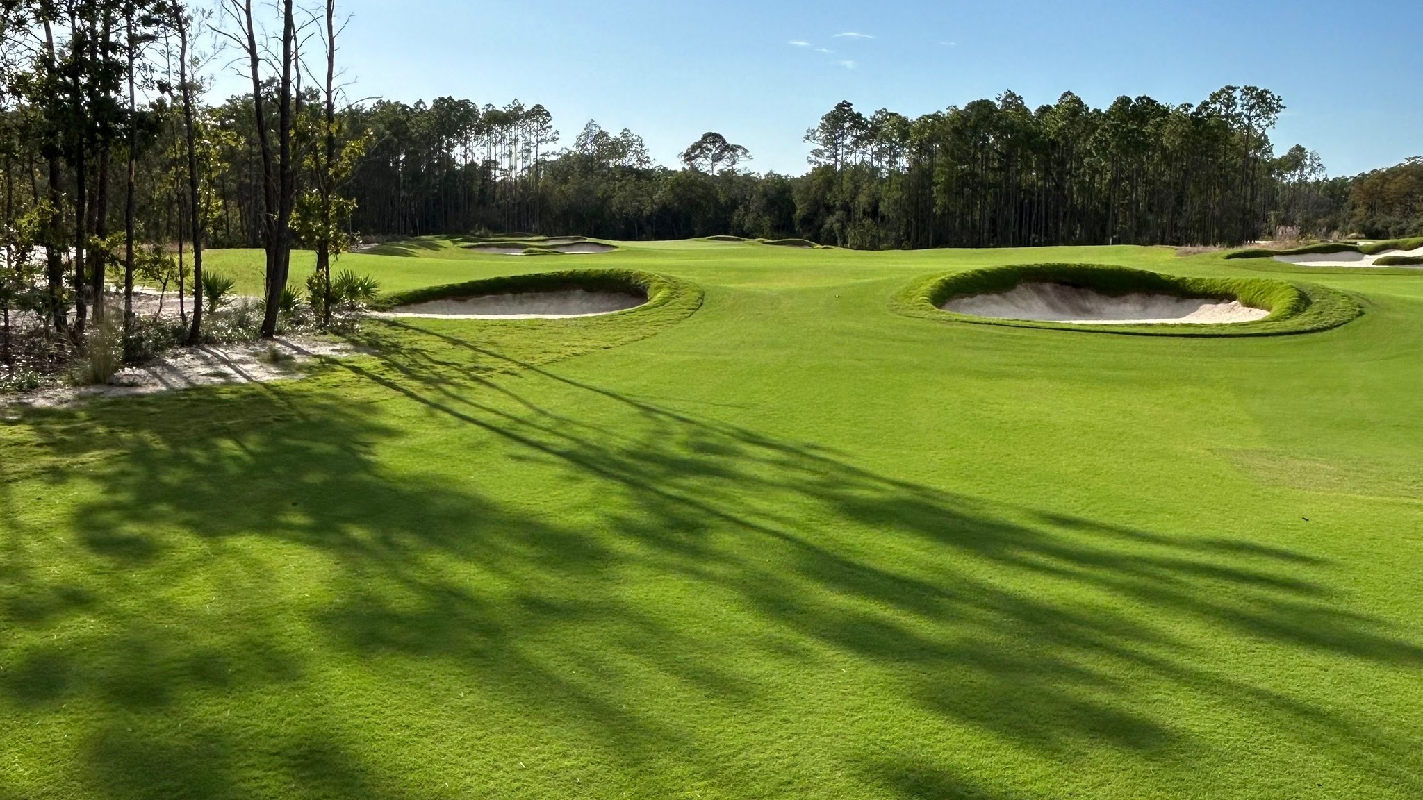 “Davis, Mark and I aimed to design a course that fits the land above all else. As we were going through the clearing process, walking the land and studying the natural features, we rerouted several holes completely on the fly. We build our golf courses in the field. Aesthetically, we wanted the course to feel timeless with a variety of looks throughout, while unified by a flat bottom bunker style, surrounding pines and oaks, and tremendous amounts of southern native grasses. The playing experience can be described as providing the maximum variety of shots, contours, views and flexibility.”