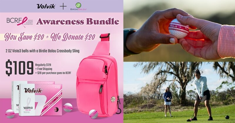 The bundle collections include two dozen of the BCRF edition Vista3 Pink 360 or Crystal Combi, plus a Crossbody Sling style bag from the popular sports accessories brand Birdie Balou. Each bundle provides the consumer with retail savings of $20, with Volvik also donating $20 from each purchase toward its annual BCRF campaign.