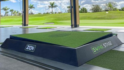 CLEARWATER, Florida – The era of the super-immersive golf simulator moves closer today, with the launch of the adjustable Zen Swing Stage hitting surface for golf.